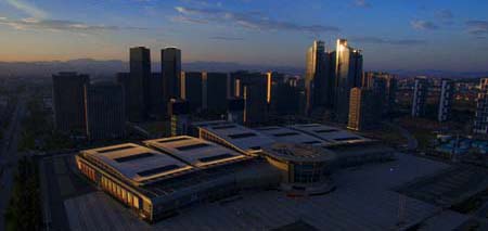 《詩(shī)經(jīng)?大雅?卷阿》:“鳳凰鳴矣,于彼高岡;梧桐生矣,于彼朝陽(yáng)?!庇揽祰?guó)際會(huì)展中心整體建筑形如一只展翅高飛的“金鳳凰”,是浙中地區(qū)功能最完善、配套最齊全、設(shè)施最先進(jìn)的專業(yè)展館之一,也是永康市最大單體建筑。總占地面積17.6萬(wàn)平方米,總建筑面積16.2萬(wàn)平方米,廣場(chǎng)設(shè)施面積10萬(wàn)平方米。國(guó)際會(huì)展中心設(shè)有千人多功能會(huì)議室,10大展廳共可提供3500個(gè)標(biāo)準(zhǔn)展位,以先進(jìn)服務(wù)理念和國(guó)際化標(biāo)準(zhǔn)為國(guó)內(nèi)外展覽、會(huì)議,以及體育健身、發(fā)布會(huì)、宴會(huì)等各類型活動(dòng)提供專業(yè)的服務(wù)體驗(yàn),被評(píng)為“中國(guó)十佳會(huì)展中心”“最具影響力會(huì)展場(chǎng)館”。